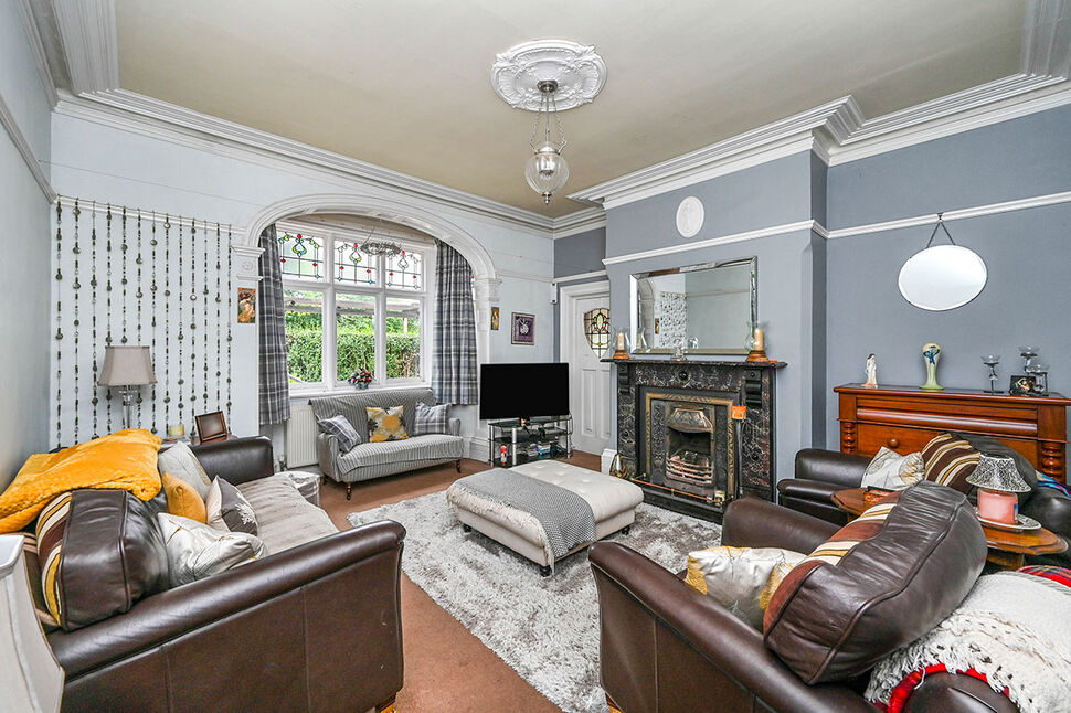 Large reception room with open fire, bay window and beautiful high ceilings.