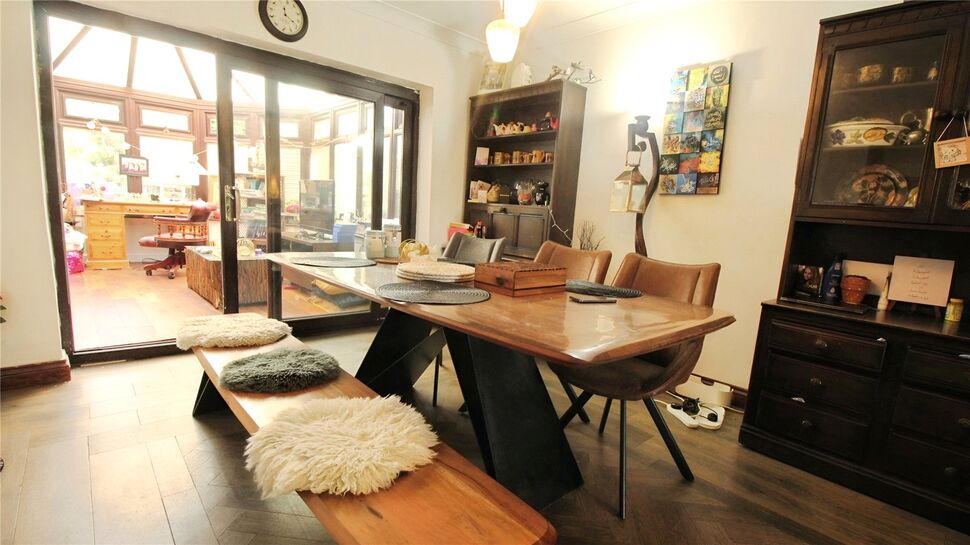 A standout feature of this property is its south-facing garden, a sizeable outdoor space perfect for alfresco dining or children's play. The conservatory invites an abundance of natural light into the home, creating a warm and inviting atmosphere.