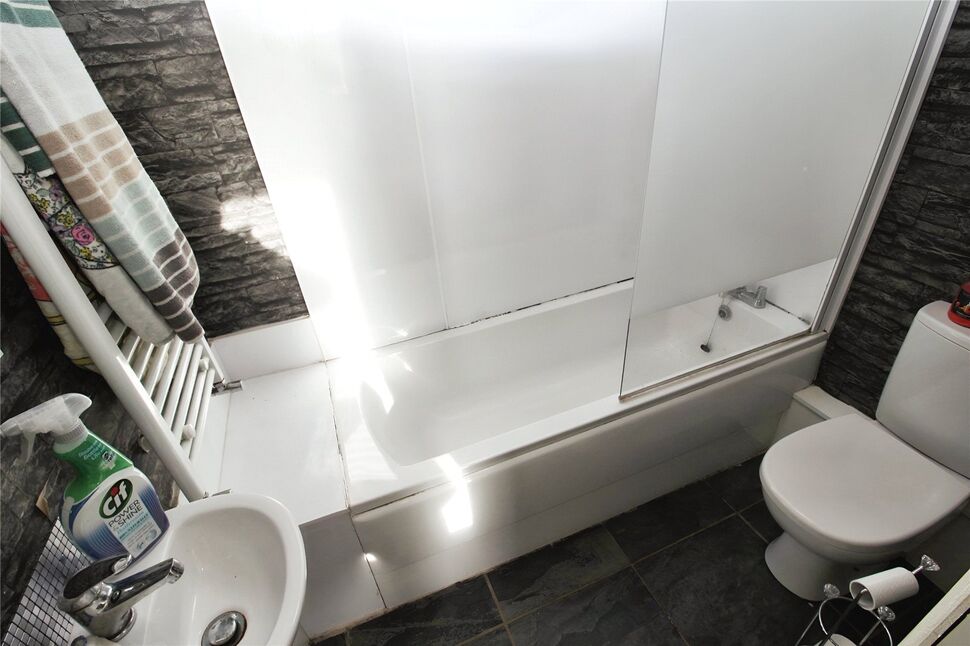 Comprising of a three piece suite, tiled flooring, heated towel rail, uPvc double glazed frosted window to the side elevation.