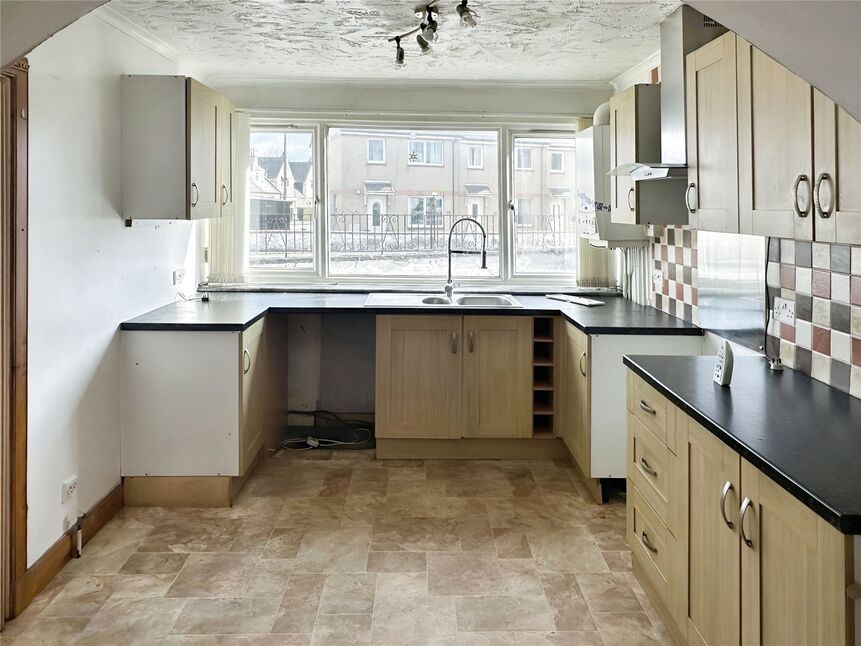 Front facing kitchen opening into the lounge offering dining space.