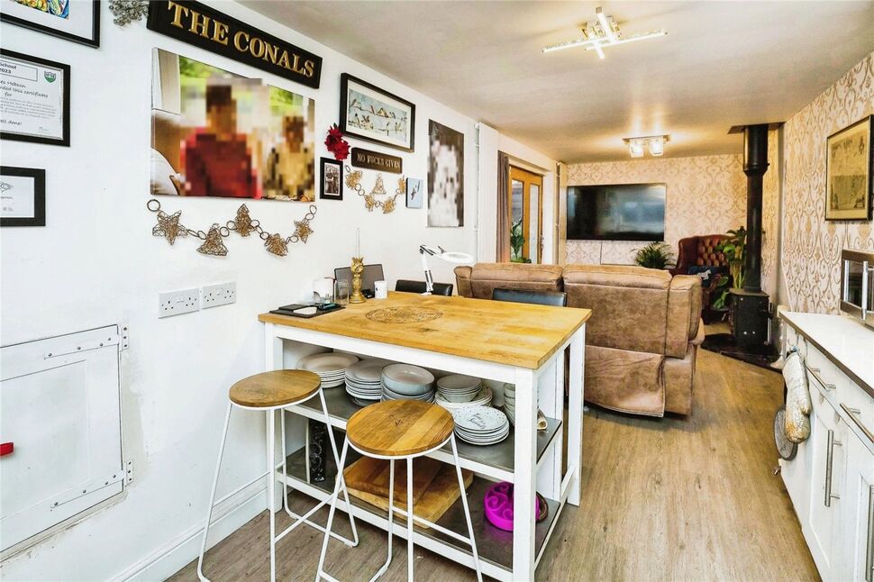 Log burner, wood effect floor, 2 radiators, double glazed bifold doors leading into the rear garden.
