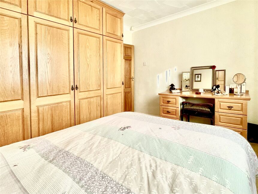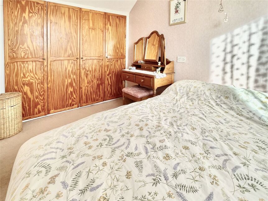A third double size bedroom with a side facing window and built-in wardrobes.