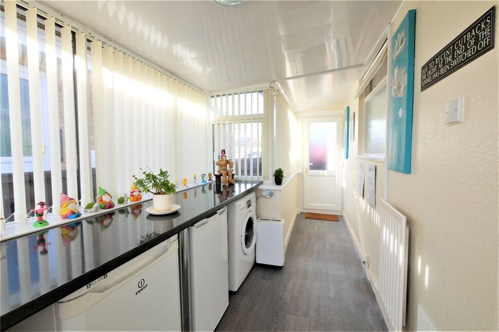 Having double glazed windows to three sides and double glazed door leading to the rear garden. Work surface with space and plumbing below for an automatic washing machine, fridge and freezer. radiator, ceiling light point and door leading to the kitchen.