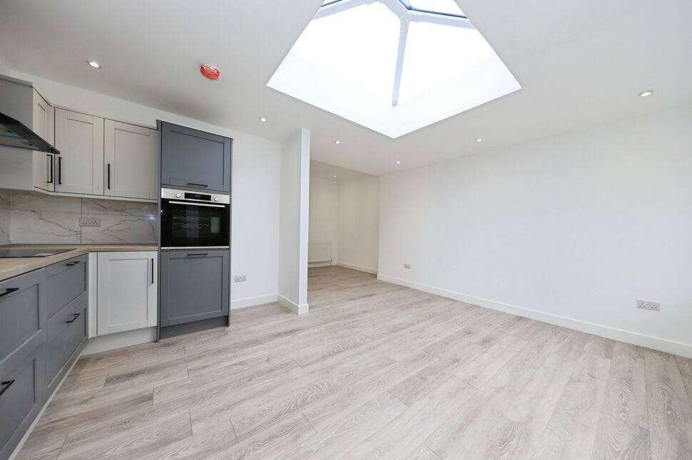The contemporary kitchen is a particular highlight, complete with dining space and modern units, perfect for entertaining. There are three bedrooms, two of which are doubles, including a main bedroom with an en-suite, and a single room, providing ample space for all the family. The property also benefits from a newly-fitted bathroom, finished to an exceptional standard, offering a touch of luxury.