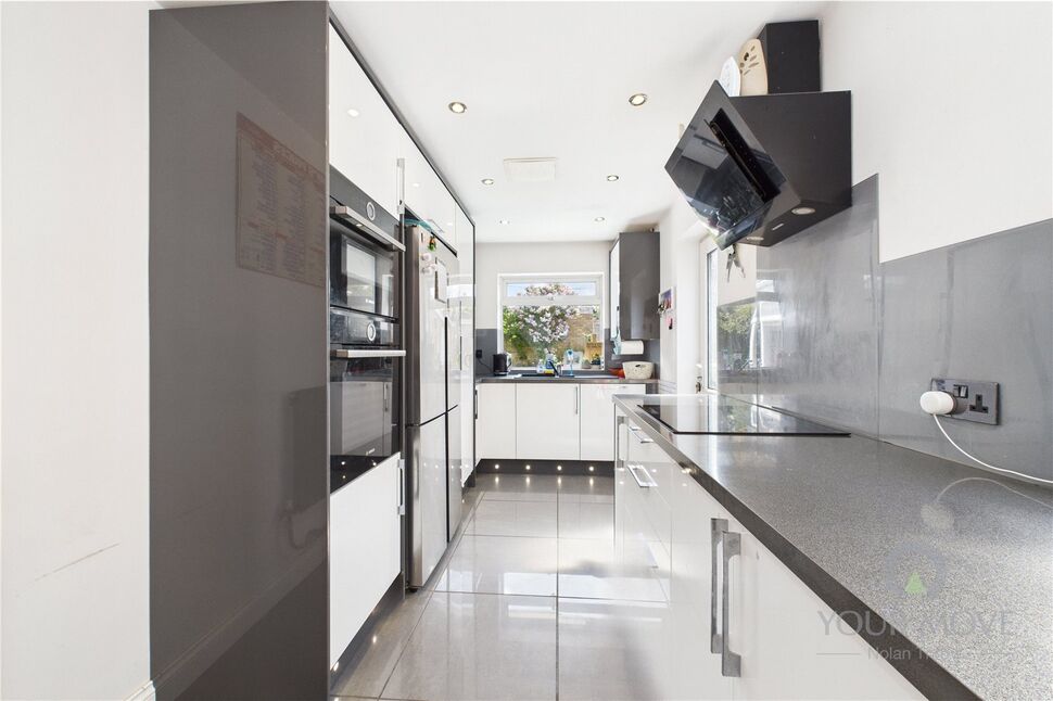 Entering from the front, the large hallway offers access to the majority of the accommodation and stairs rising to the first floor. At the front aspect is a reception room/second bedroom with a window at the front aspect. To the rear is a modern kitchen breakfast room comprising multiple wall and base mounted units, space for appliances and a built-in oven and induction hob. Adjacent to the kitchen, is the well-proportioned living room leading into the conservatory.