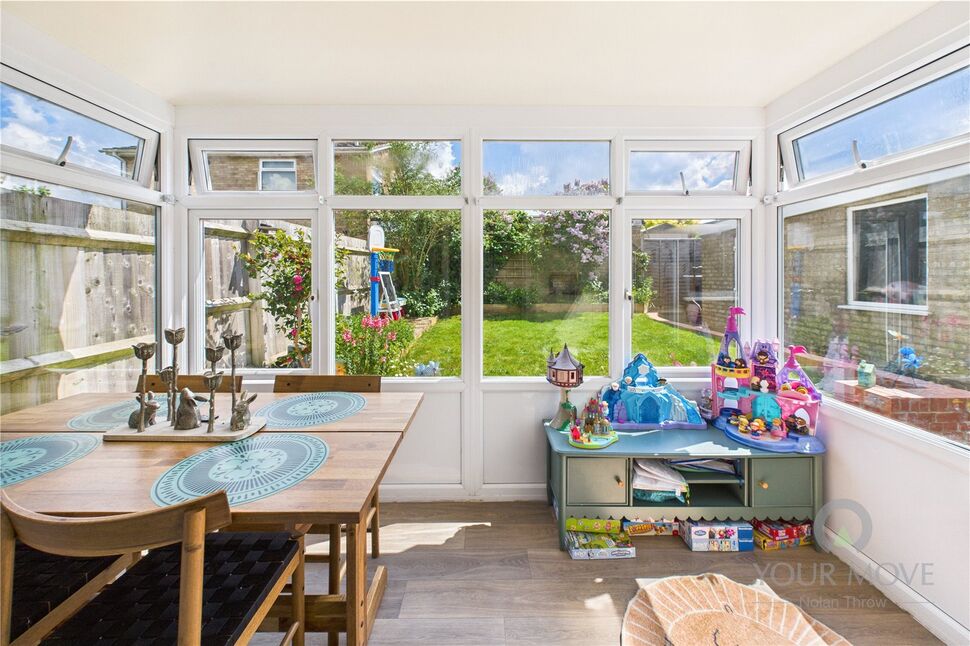 Outside, the property enjoys a large front garden and a enclosed rear garden. The rear garden consists of laid lawn and a pathway leading to the single garage. The single garage has an up-and-over door and provides further storage to the property.