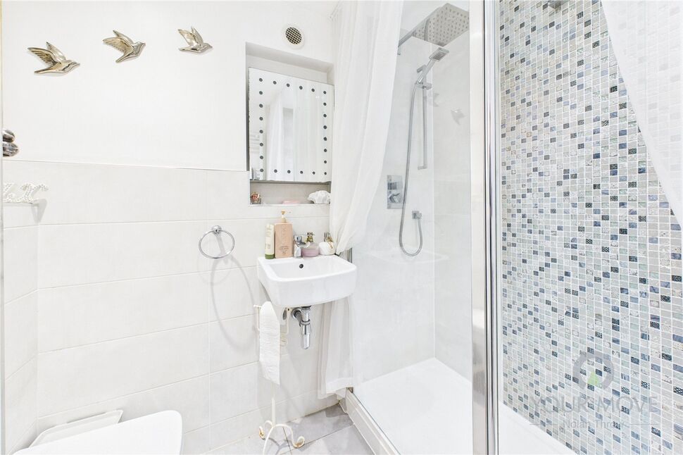A bright entrance hall leads into the property, featuring a practical work-from-home nook and a stylish ground floor bathroom with a walk-in shower. To the front, there is a generous lounge, while the rear boasts an impressive extended lounge/diner that flows into a characterful wooden-framed conservatory. The well-appointed kitchen offers ample space and garden access, creating a functional and sociable ground floor layout. Upstairs, the property comprises two double bedrooms, a good-sized single room, and a separate WC.
