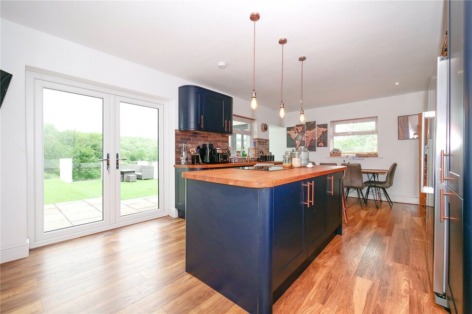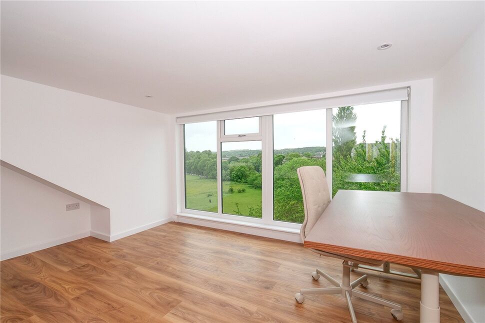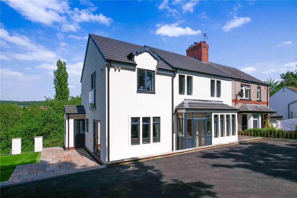 Only an internal inspection can fully appreciate this beautifully renovated and extended FIVE BEDROOM semi detached situated in this sought after location, along a quiet country lane enjoying outstanding views, and approx 2 Acres of land. Close by are excellent local amenities, good schools, and Bingley train station which offers excellent commuter access to Leeds and Bradford town centres. For the keen golfer Shipley Golf course is just adjacent to the house. The stunning family home offers very spacious accommodation briefly comprising an entrance porch, living room, superb open plan dining kitchen, utility room and sep WC. To the first floor are three double bedrooms, Stylish modern fitted en suite and family bathroom. To the second floor are two large double bedrooms with floor to ceiling windows enjoying stunning views across the Aire Valley. With gas fired central heating and double glazing. Externally the property is access via an electric remote control gate which provides excellent off road parking and leads to a spacious double garage with electric roller door. To the side is a decked garden area with artificial lawn and glass style balustrade enjoying fantastic views. Steps lead down to a further decked area which provides access to useful under house storage area. Included within the sale are approx 2 Acres of land and an older style stable block.