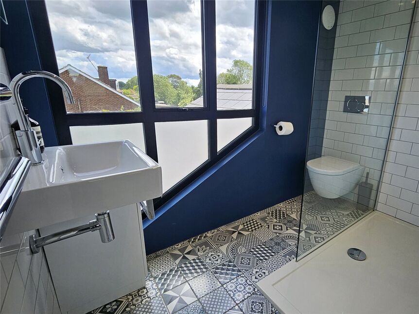 Tiled floors and wall, Spacious walk in shower with handheld and rainfall shower options, W.C. hand wash basin, double glazed window to rear.