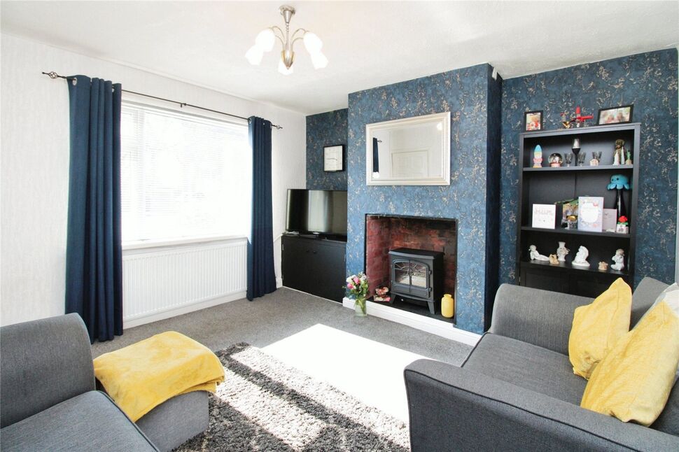 A well proportioned living room with chimney breast, radiator, and UPVC double glazed window.