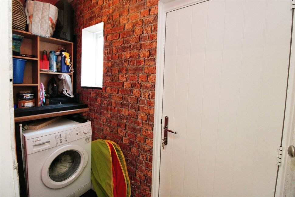 Housing the washing machine and extra storage space. Access to the rear garden.