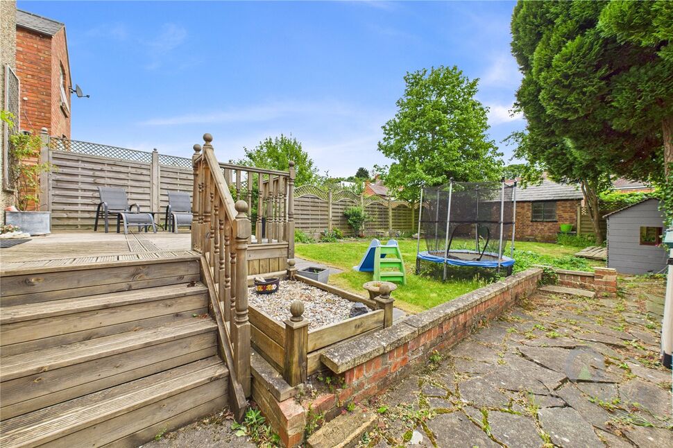 Outside, the rear garden features a raised decking area perfect for outdoor dining, with the remainder mostly laid to lawn. Two brick-built outhouses offer excellent storage.