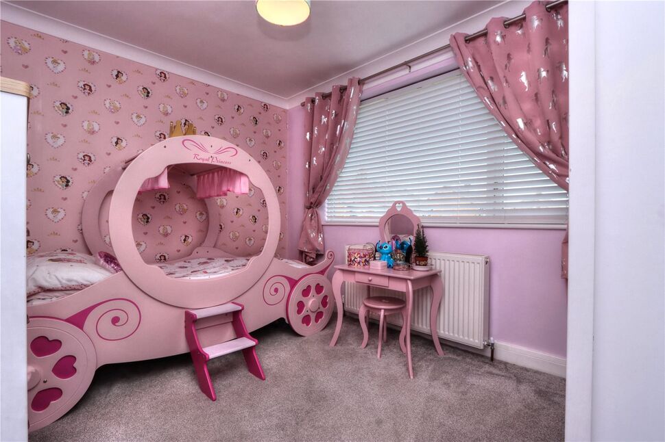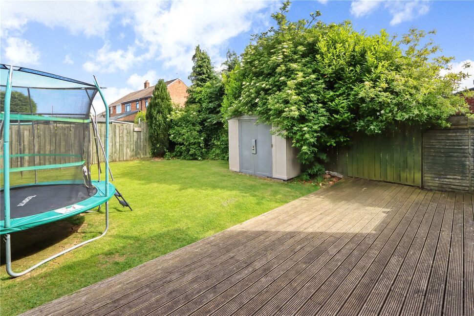 Externally the Garage is attached with roller shutter door. The Front Garden is tarmaced providing ample off street parking, whilst the Rear Garden is ideal for family use, with decking, lawn and a shed.