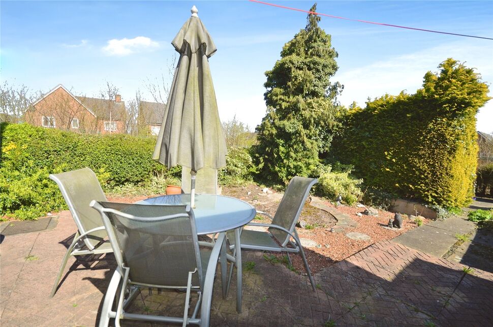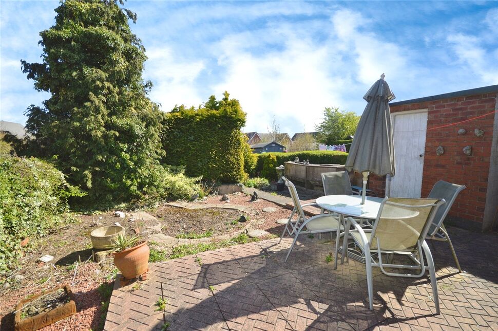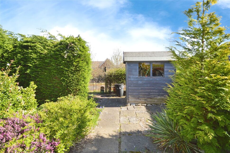 The garden is generous in size with a shed, patio are and garden shrubs.