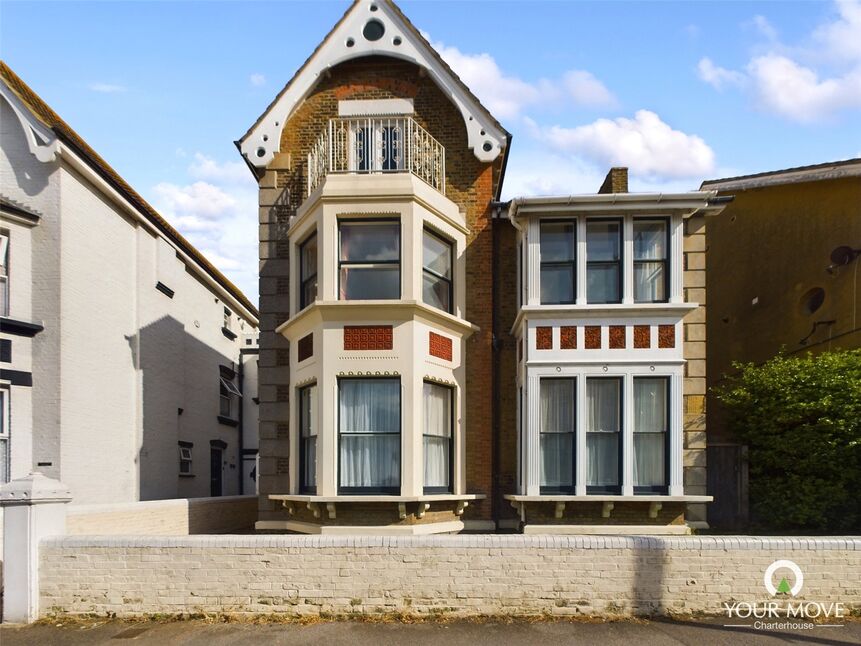 This spacious period property dates back to 1879 and still retains many original features but has been well maintained by the current owners and incorporates modern living with period charm. The exterior was painted last year with a 12 year guarantee and the quoins were also replaced. The sash windows have also been refurbished and recorded with secondary glazing and it does have some double glazed windows to the rear. The property still retains its original Victorian path and the owner has spare external ornate wall tiles. This property is currently used as an Airbnb and has a self contained flat on the top floor which could be ideal for guests if it were to be used as a family home. The ground floor has 2 bedrooms, one with an ensuite and one with sea views, ideal for those less mobile, the spacious lounge also has a large sash bay window to the front again with sea views. There is a separate dining room, kitchen, utility room and a bathroom plus basement. The first floor has 3 bedrooms, 2 having sea views and 2 with ensuites plus the large family bathroom. The second floor which is currently a self contained flat was 3 bedrooms but is now a bedroom with ensuite, spacious lounge and a kitchen/diner with a balcony to the front again with sea views. This property is heated by mains gas central heating. The sunny enclosed rear garden is mainly laid to lawn with side access via a gated storage area which could with the relevant permissions be converted into a workshop/office or even off street parking. This spacious versatile property is in the perfect location just across from the main sands at Margate and within a few minutes walk of the railway station. This home really needs to be viewed to appreciate all its has to offer.