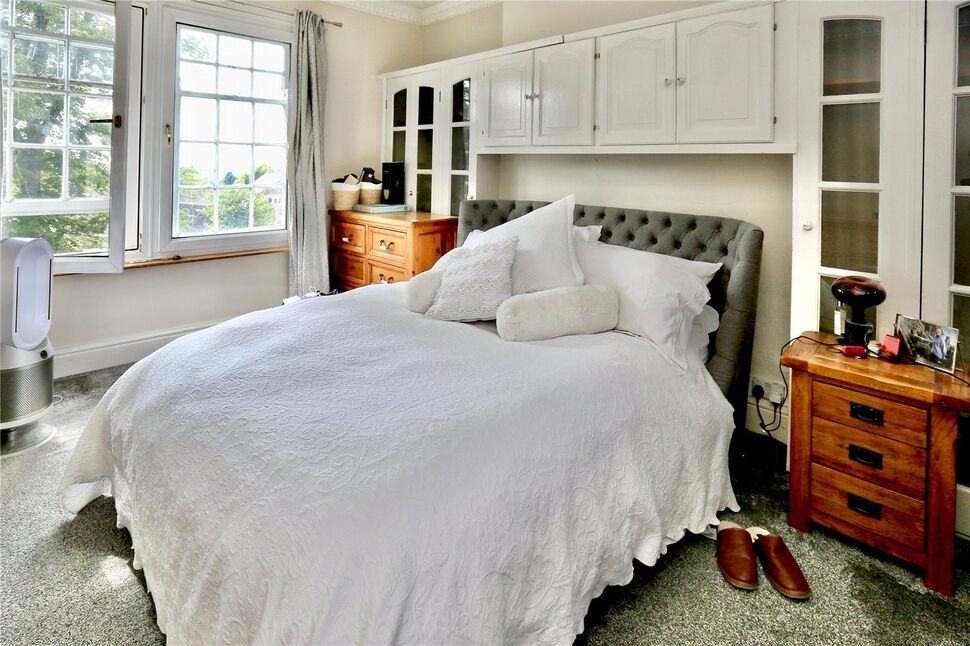 An excellent size master bedroom with front and rear facing windows with fitted wardrobes.