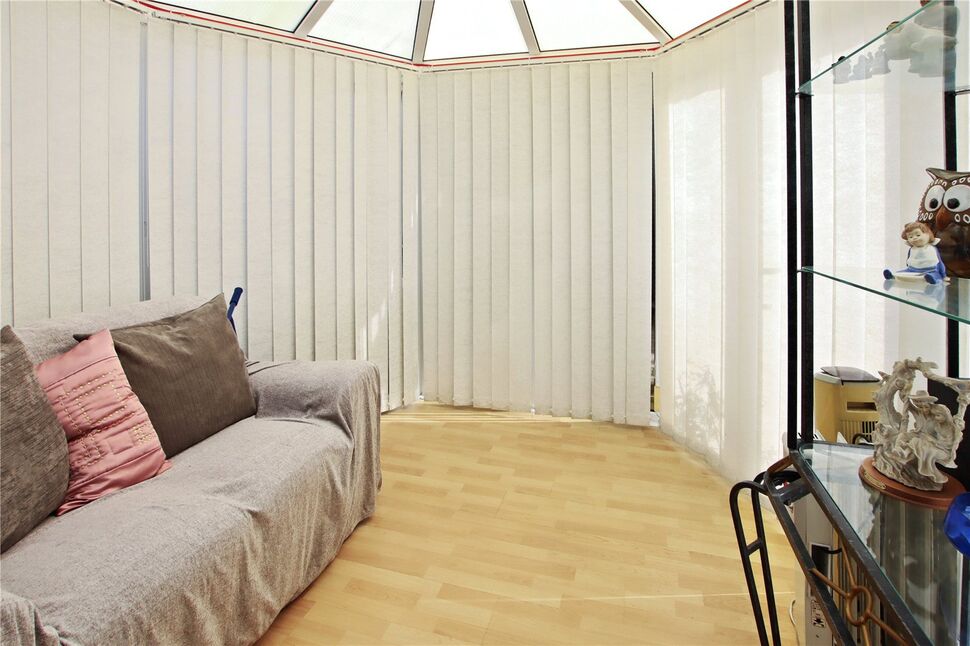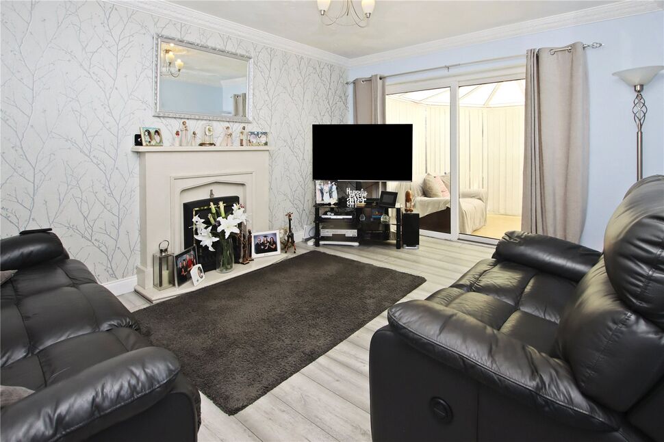 On the ground floor, you'll also find a convenient downstairs W/C and a spacious living room that flows through to a bright and airy conservatory.