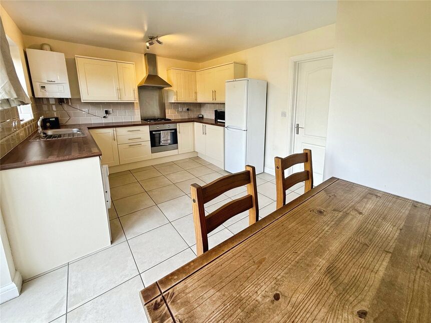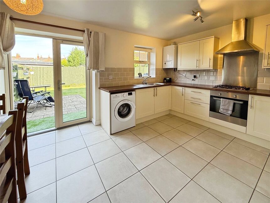 Spacious, modern, bright and impeccably presented kitchen-diner hosting a range of wall and bae units with contrasting work surfaces, integral oven with a four ring gas hob with an overhead extractor hood, space and plumbing for a washing machine, sink and drainer unit, wall mounted central heating boiler, tile splashbacks, radiator, double glazed window to the rear aspect and uPVC double glazed French doors to the rear aspect opening to the rear patio.