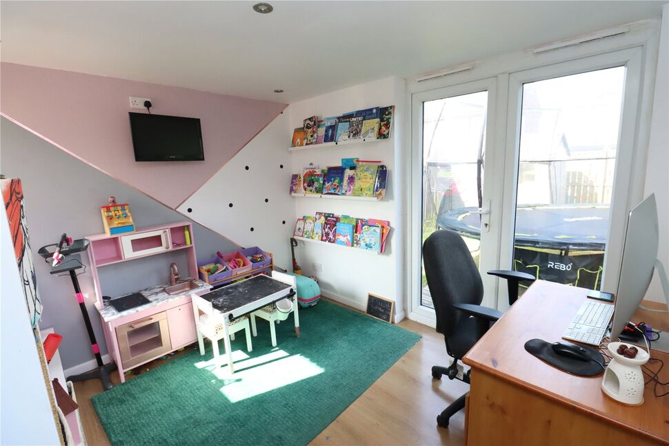 Double glazed windows to side and front, double glazed French doors to rear leading out to the rear garden, laminate flooring and radiator.