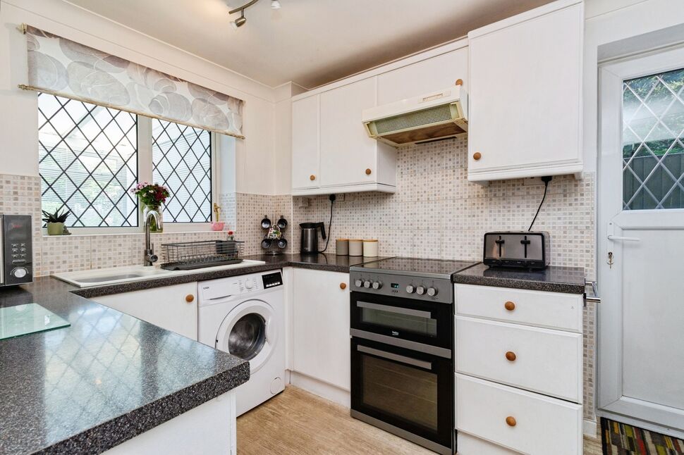 Wall and base units, space for appliances, understairs cupboard, side double glazed door to outside.