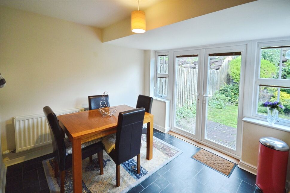 Fitted with a range of wall and base units incorporating sink unit, built in oven & hob with extractor hood, double glazed window, radiator and french doors opening out to rear garden area with two side double glazed windows.