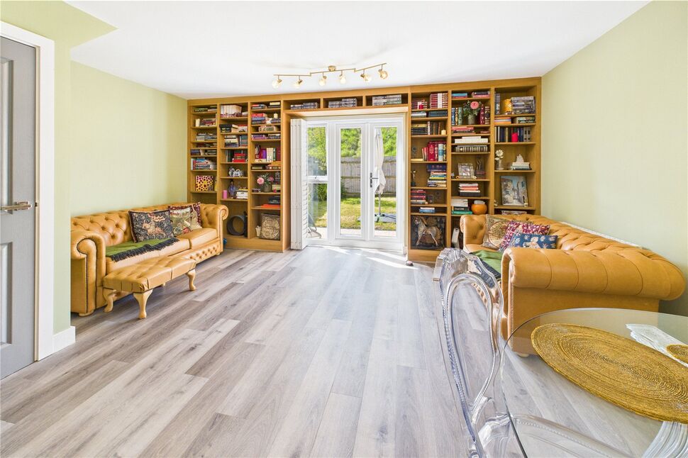 Upvc double glazed windows to side and rear, upvc double glazed French doors to rear, understairs cupboard, single radiator, built in bookcases and shelving.