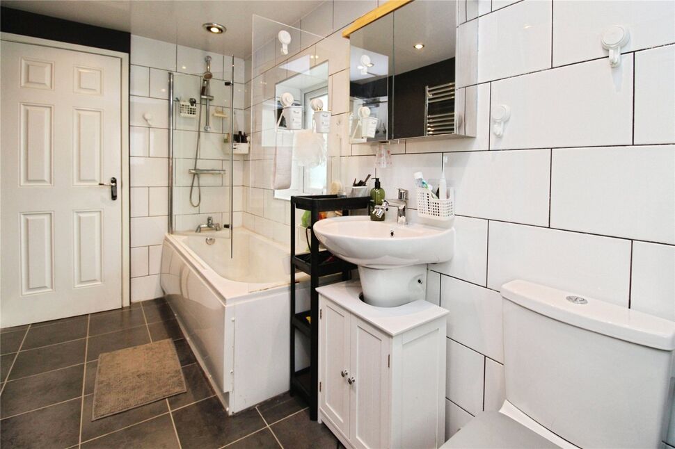 There are two double bedrooms, offering generous accommodation and flexibility for a range of arrangements, whether you require additional storage, home office space, or guest rooms. The bathroom benefits from a modern suite, complete with a shower over the bath and a fitted storage cupboard to help maintain a clutter-free environment.