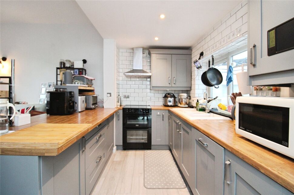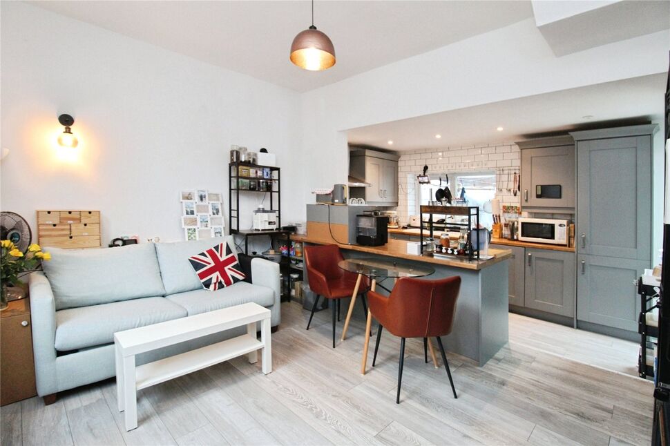 The house features a separate reception room, providing a versatile space for relaxing or entertaining guests. The open-plan kitchen is filled with natural light and includes dedicated dining space, making it a welcoming area for preparing meals and enjoying them with family or friends. There is the added benefit of a utility room with fitted units a sink, and garden access.