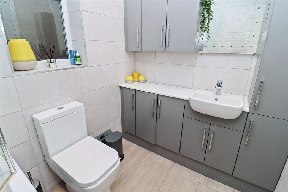 The ground floor comprises 19ft lounge with built in storage cupboard and refitted kitchen with contemporary grey shaker style units. The kitchen also benefits from underfloor heating. The owners are leaving the dishwasher, fridge freezer and microwave as part of the sale.
