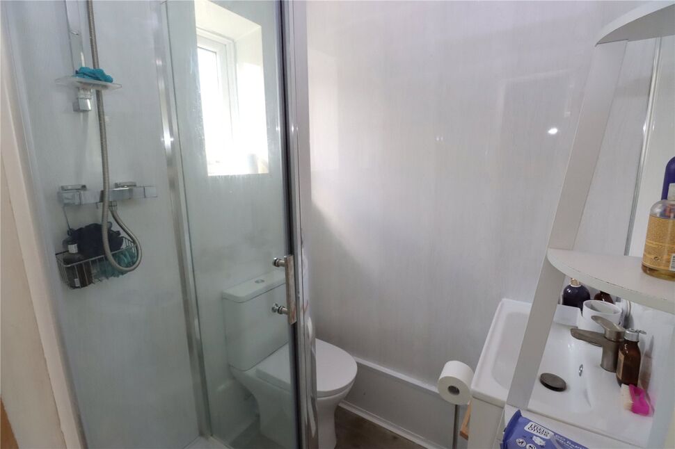 Panelled walls, washbasin with storage, double glazed frosted window, corner shower cubicle with plumbed shower, Low level WC.