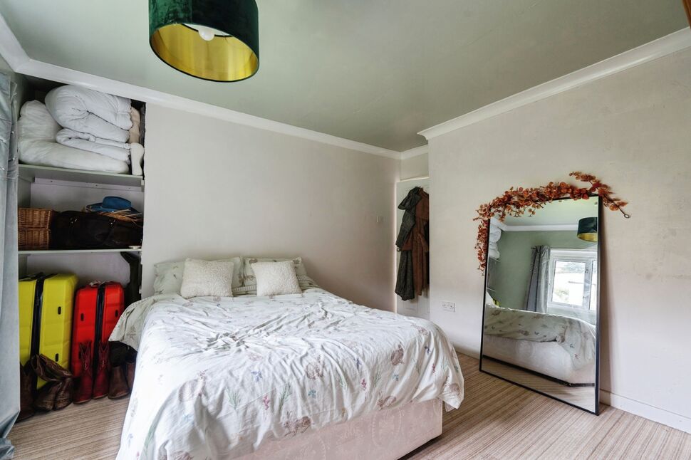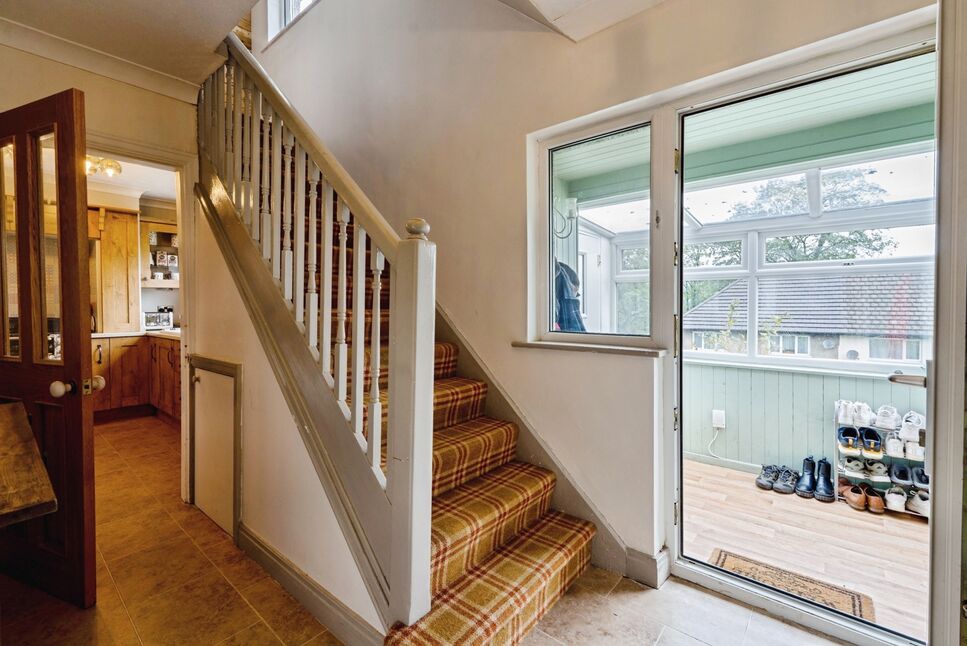 Upon entering, you pass throug the handy porch and are greeted by a bright and spacious reception room, featuring a dual aspect fireplace and delightful garden views – an inviting space for relaxation or entertaining. The open-plan kitchen boasts a dining area, direct garden access, and the unique charm of a dual aspect fireplace, creating a warm and sociable hub for family life.