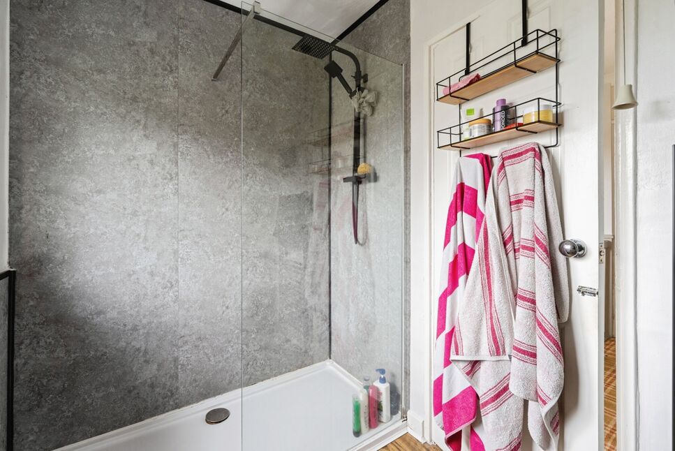 Upstairs, the accommodation comprises two generously sized double bedrooms and a further single bedroom, offering flexibility for family needs or home working arrangements. The modern bathroom is equipped with a heated towel rail and a large walk-in shower, providing a touch of luxury for everyday living.