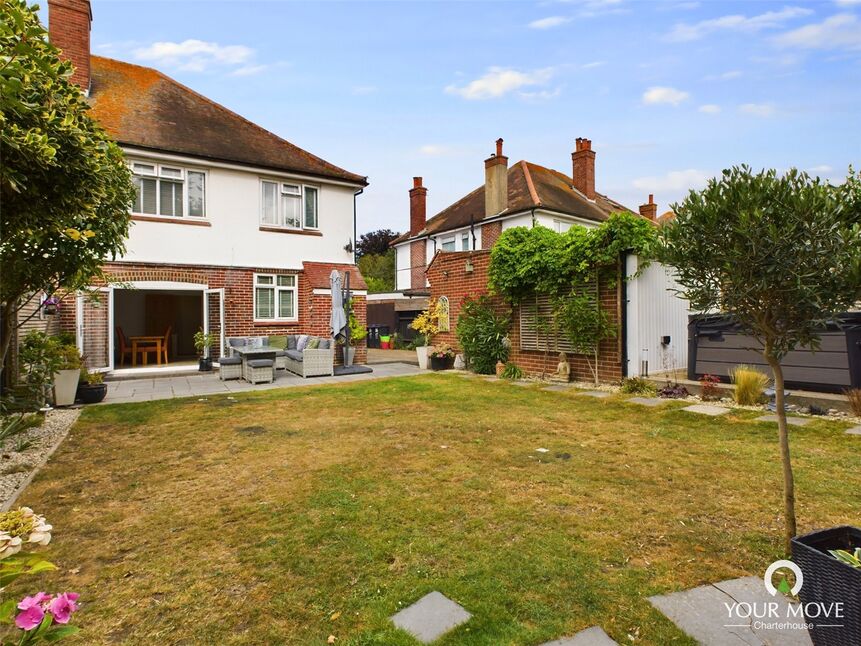 Your Move are delighted to market this 4 bedroom family home with a detached garage set back to the side with additional gated parked and a cabin in the rear sunny enclosed garden. This home benefits downstairs from an open plan modern fitted kitchen/diner with French doors opening to the rear garden, downstairs WC, lounge with feature cast iron fireplace and spacious entrance hall. The first floor has a generous landing which could accommodate a staircase if a loft conversion was required, 4 bedrooms, a bathroom and separate WC. The sunny enclosed rear garden is ideal for relaxing/entertaining as it has a hot tub, BBQ area and a cabin which is currently used as as bar/lounge but could also be used as guest accommodation. There is also ample space to the side of the house should you wish to extend or park further vehicles plus a garden WC. This home has double glazing throughout and gas central heating. It is located opposite Hartsdown Park and just a half mile to the sandy beach of Westbrook which has attained a Seaside Award. This home really needs to be viewed to appreciate all it has to offer.