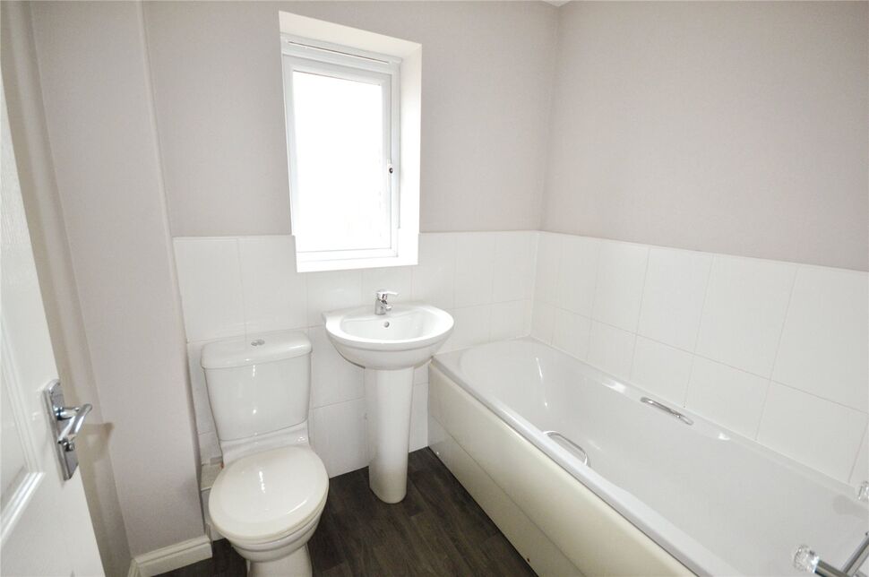 With a white suite comprising WC, wash hand basin and bath. Radiator and double glazed window.