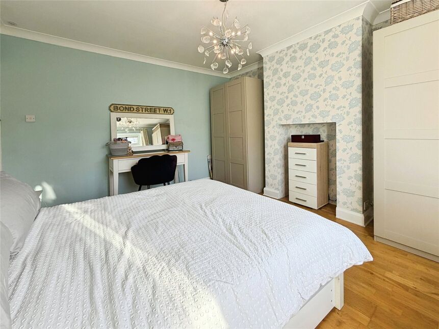 The modern kitchen benefits from ample natural light, providing a bright and functional space for family meals and entertaining guests. Accommodation is equally impressive, comprising three bedrooms: two doubles, one of which is enhanced by built-in wardrobes for added storage, and a well-proportioned single bedroom.