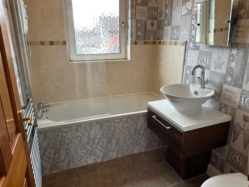 The first floor offers two bedrooms and a modern family bathroom w/c. The main bedroom is set to the front and has built in storage.