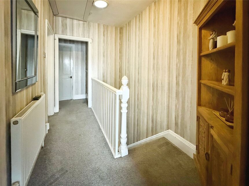 Spacious and airy landing with carpet flooring, radiator, over stairs storage cupboard and a large storage cupboard. The landing also provides loft access to the loft space which has a pull down loft ladder and is boarded with lighting also available in the loft space.