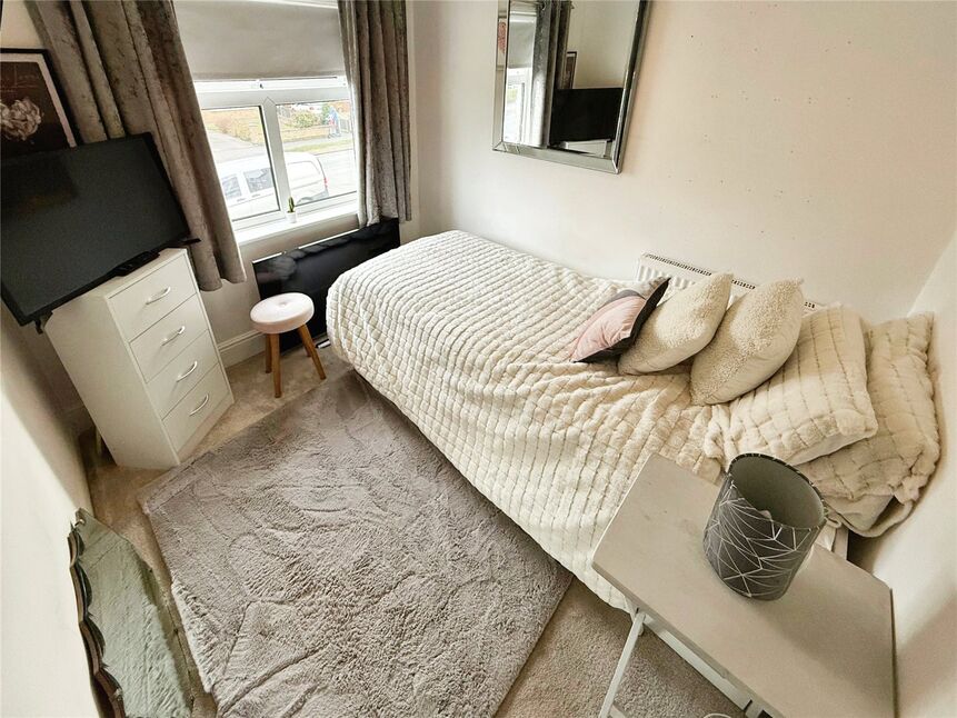 Generously sized third bedroom hosting carpet flooring, radiator and a double glazed window to the front aspect.