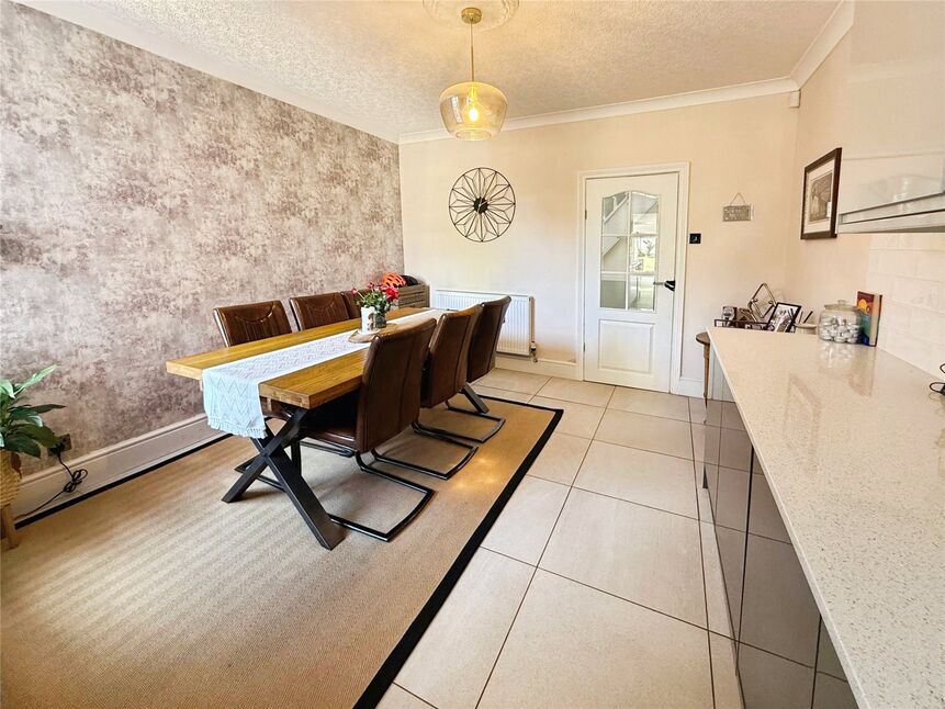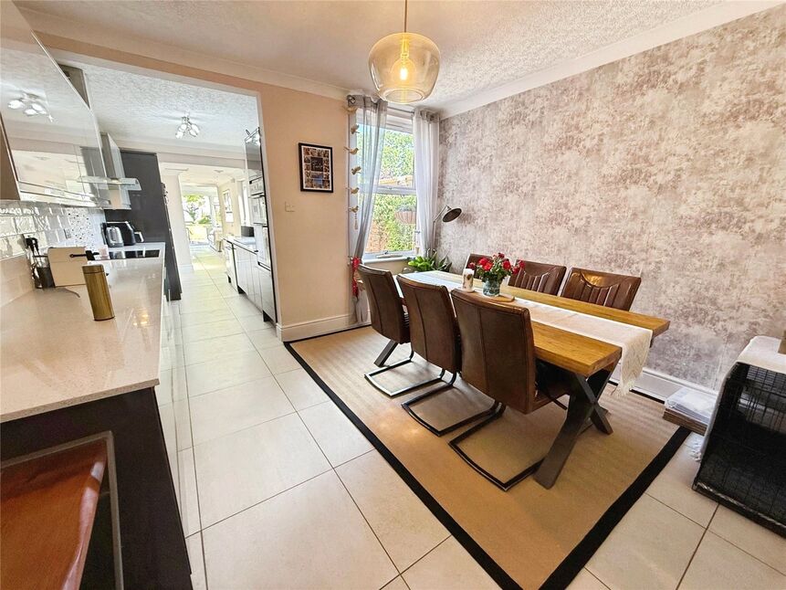 Tasteful dining room which opens beautifully to the modern kitchen comprises tiled flooring, radiator, double glazed window to the rear aspect and partial kitchen base units which run through to the kitchen.