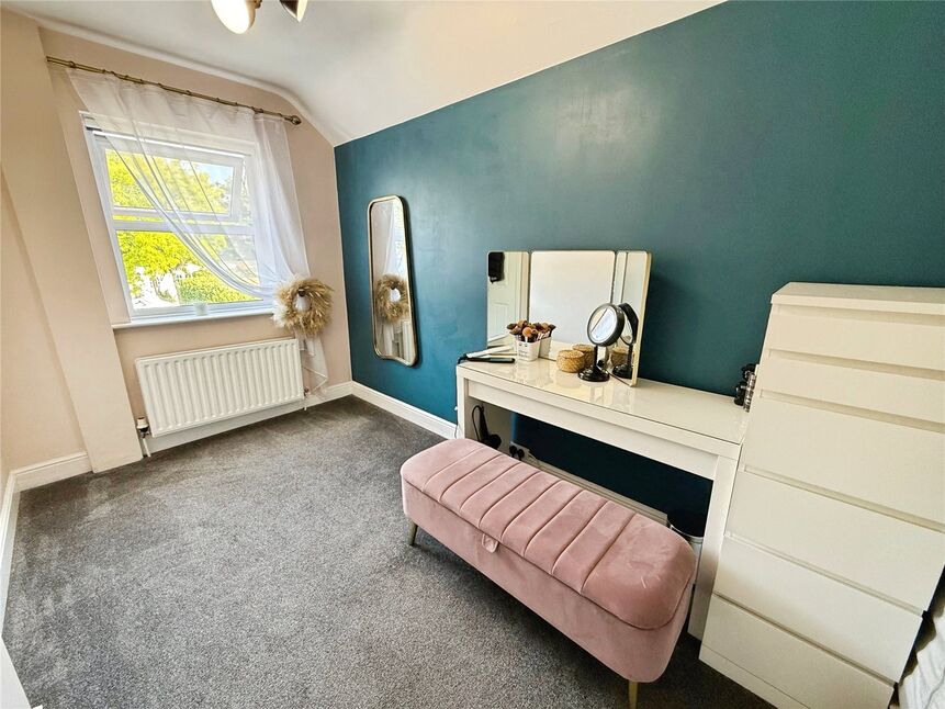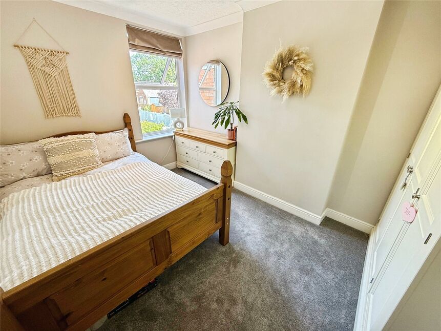 Double bedroom with carpet flooring, radiator and a double glazed window to the rear aspect with fitted blinds.