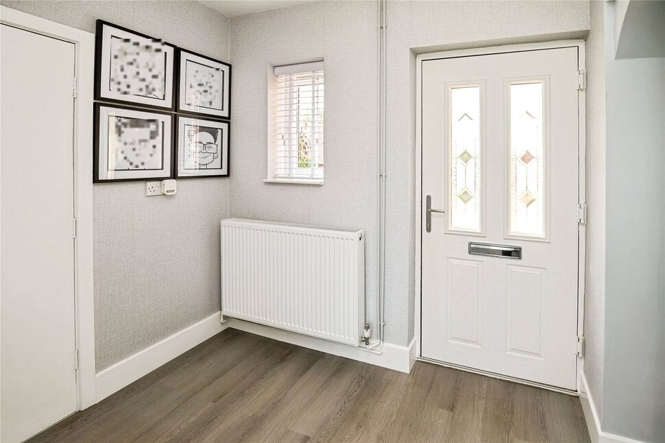 Radiator, double glazed doors to front & rear gardens, radiator, double glazed window.