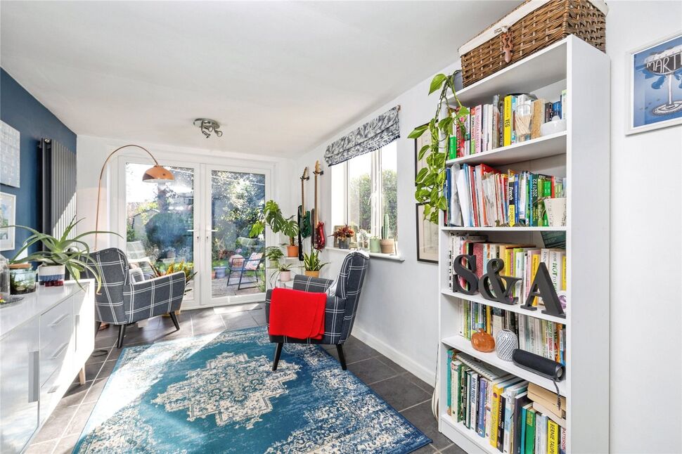 A beautiful, expansive and bright additional space at the rear of the property which offers a versatile family space and comprises; Custom wider fit uPVC double glazed French doors to the rear aspect, feature wall radiator, tile flooring and a double glazed window to the side aspect.