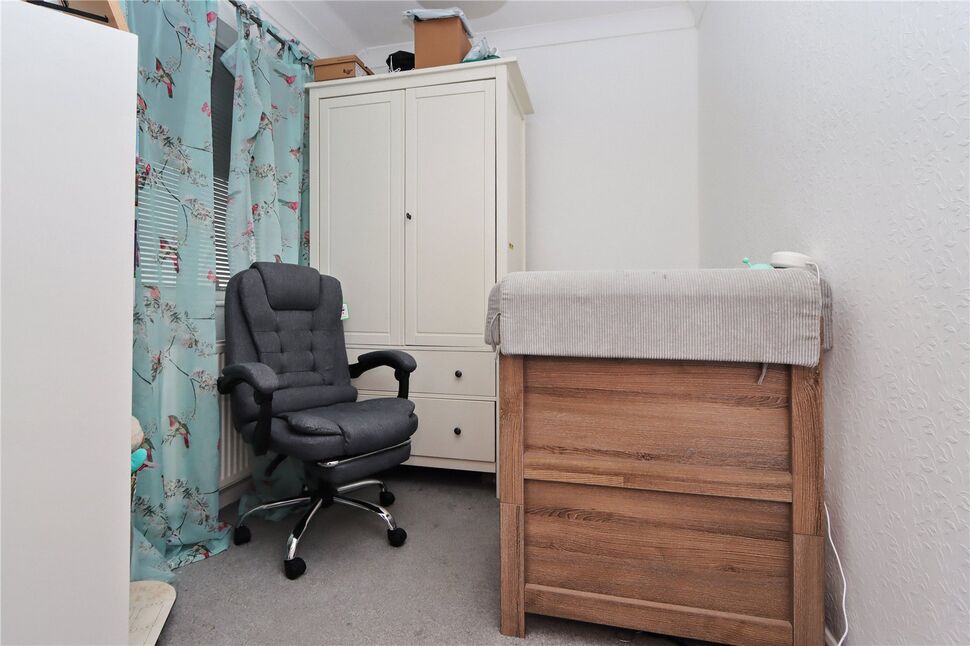 Upstairs, the first floor comprises three bedrooms. The spacious master bedroom includes built-in storage, while the second bedroom comfortably accommodates a double bed and also benefits from built-in wardrobes. The third bedroom is ideal as a single room, nursery, or home office. A modern family bathroom completes the first floor.
