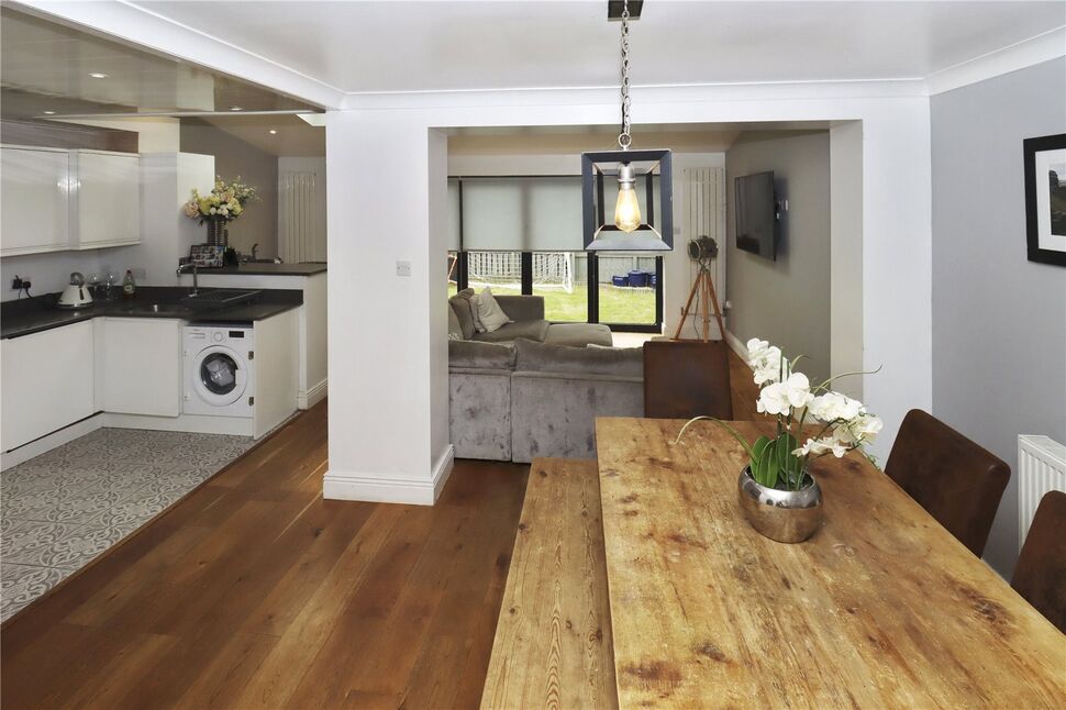 A beautifully extended three-bedroom family home, offering generous and versatile living space throughout. The ground floor features a stunning modern open-plan kitchen, dining, and family area perfect for entertaining or everyday family life, alongside a separate playroom or study, ideal for remote working or children's activities. Upstairs, the spacious master bedroom includes fitted wardrobes and a stylish en-suite, complemented by two further well-proportioned double bedrooms and a contemporary family bathroom/WC. Externally, the property boasts a large rear garden and a double driveway for ample off-street parking. Situated on the highly sought-after Monks Wood residential estate, this is a superb home in a desirable location.