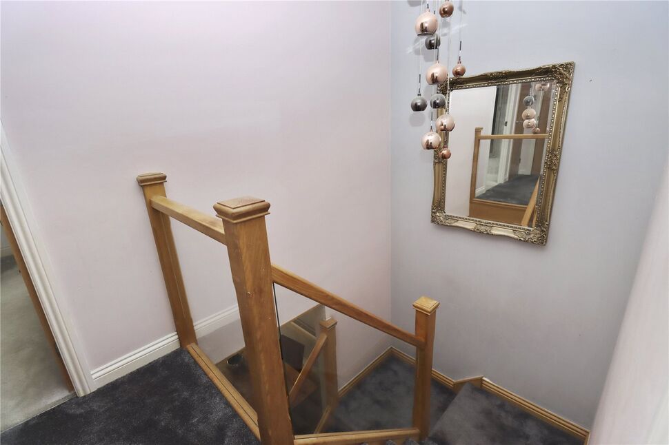 Return staircase, loft access, built in storage cupboard and doors off to: