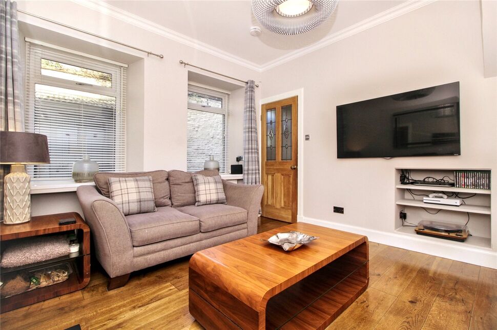 A spacious, cosy feeling reception room featuring a charming fireplace and dual aspect windows, allowing natural light to flood the space.