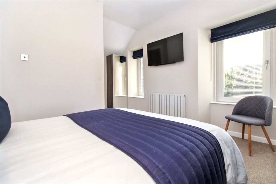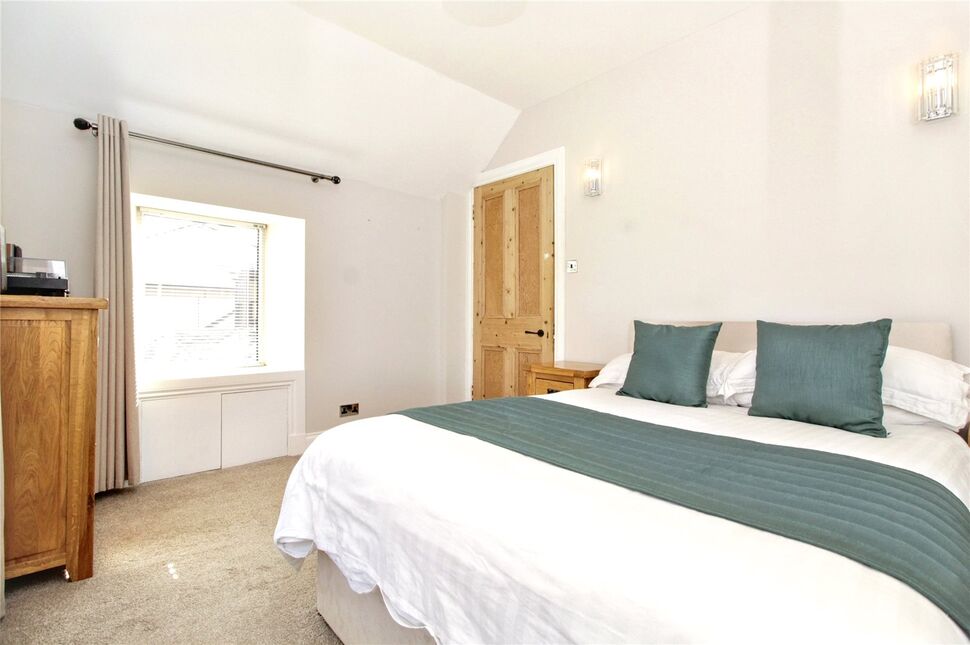The second bedroom is another generous double room. This room has a discrete boiler cupboard with mirror front and plenty of space for a free-standing wardrobe.