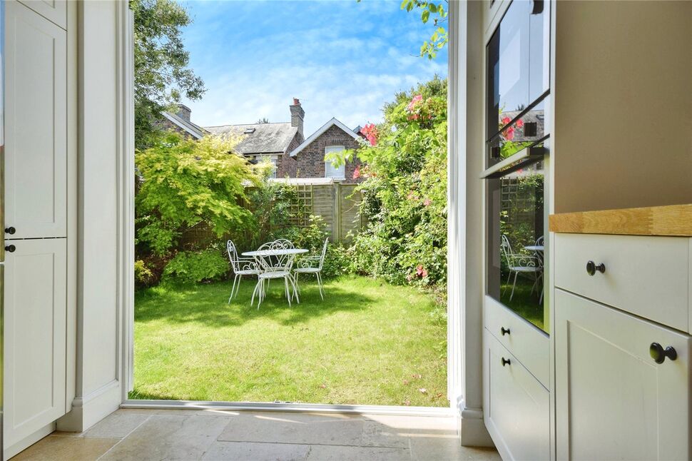 Outside, the rear garden is a tranquil oasis and enjoys lawn raised flowerbeds, and mature borders offering excellent privacy. A side gate provides access to the front garden, where subject to necessary consents, there is potential to create off-street parking.