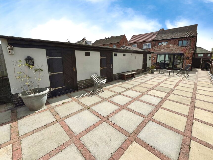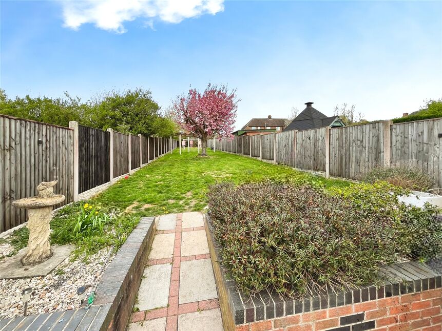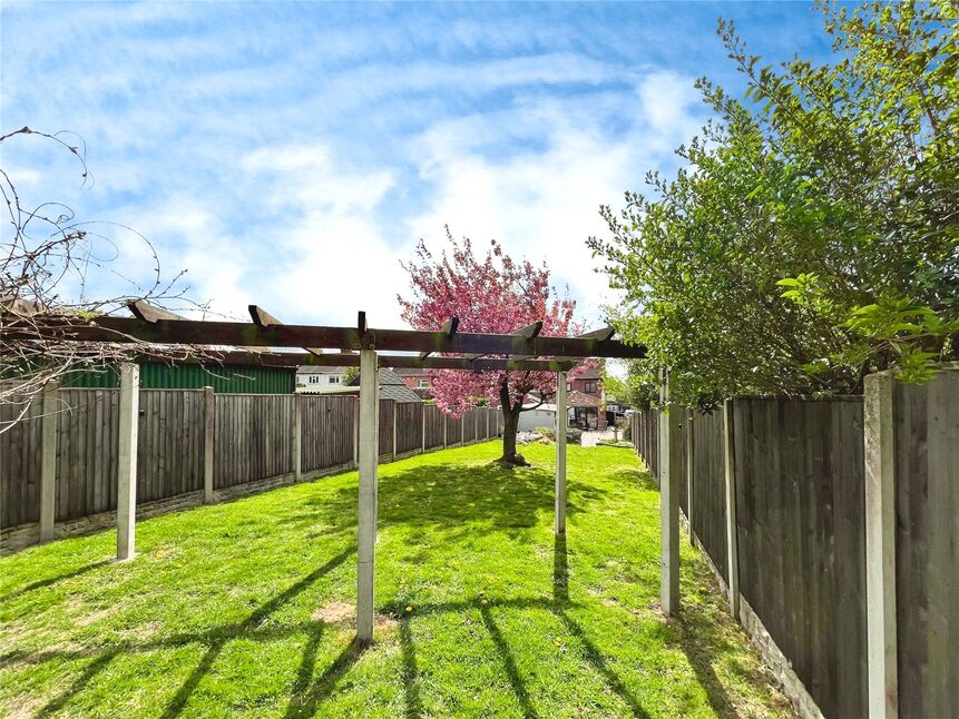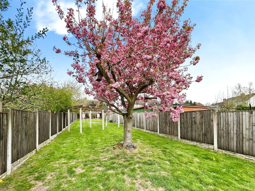 A stunning flat rear garden awaits the new homeowner, enhanced by a feature blossom tree to the centre there is also a pogona and feature brick retaining wall incorporating a large paved patio and barbecue area. The patio area also conveniently leads round to gated to front elevation.