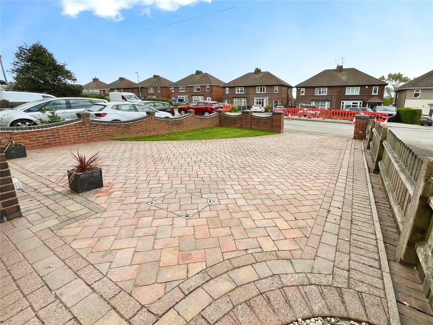 An extensive block paved driveway gives access for two cars and shrub boards and gate lead to rear garden.